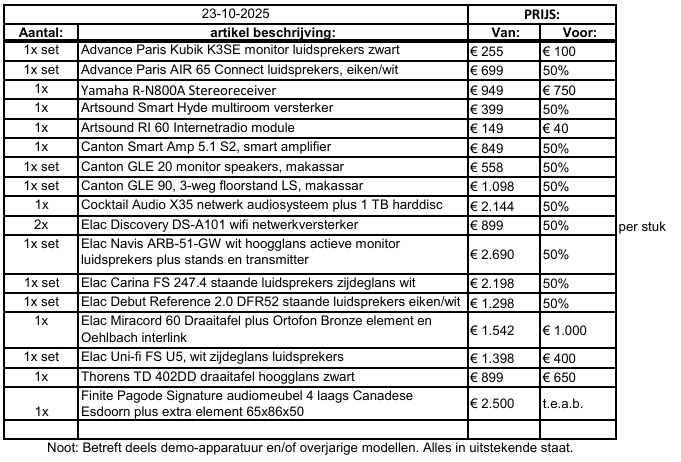 I.v.m. opheffing HJ hifi houden we uitverkoop.