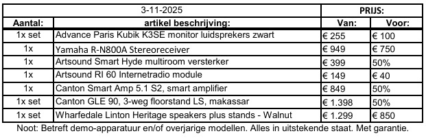 I.v.m. opheffing HJ hifi houden we uitverkoop.